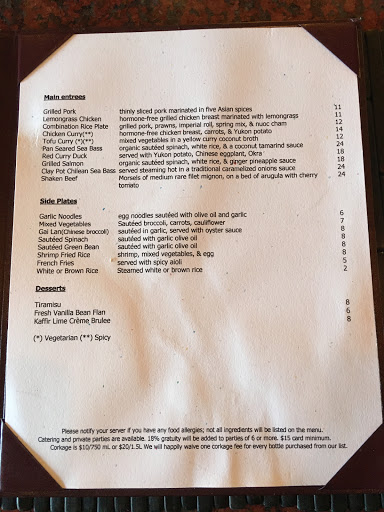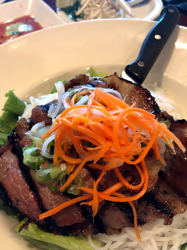 I order their version of Bún Thịt Nướng. It was somewhat pale compared to a real Vietnamese restaurant. The fish sauce was too tangy and a few items I appreciate and consider typical to the dish were missing such as cilantro and basil. The Sea Bass that my father had was very good. The apps that my brother had were good but smallish. Wine that we ordered by the glass was great accompaniment to the dishes and a good value at $8-10. No air conditioning made the dinner just this side of miserable being that it was about 100 Fahrenheit outside. Would go back for the Sea Bass to go.