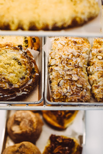 Baked goods or breakfast. Buttercream is a must. The biscuits and gravy is so delicious its like being in the South. Apple fritters, old fashion/cake/raised/bar donuts are typical fare here. But they do make a special bacon maple bar with a strip of bacon on top of the bar. They are they only place in town that does strawberry rhubarb pie, which is my favorite. Weve been going to this place for years. When you see the pink box, you know its gotta be Buttercream.