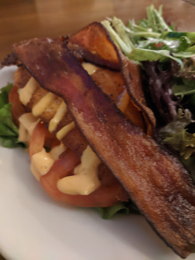 Came with two kids, two adults. Turkey burger not dry, spinach good touch. Flatbread pizza good IMO, but not too liking of 7-year old. Husband loved his BLT and garlic fries. Older kid devoured the wedge. Co-owner Stacey was delightful, service was solid if busy. Nice beers on tap, two of their own.