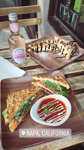 On my first trip up to Napa, my friend and I asked locals which restaurants they would recommend and they directed us to Melted. It is now a staple part of my Napa experience. Both times, Ive ordered the number three, the "Good Morning Captain" and it may be difficult to try other things on the menu because I liked it so much. Instead of bread they put the sandwich on thin waffles which taste absolutely delicious. The venue itself isnt very large, it has a minimalist modern feel to it, and the staff, especially the general manager, was very nice and helpful. I highly recommend trying this spot. If you can, try to grab a table outside and enjoy the sunshine!