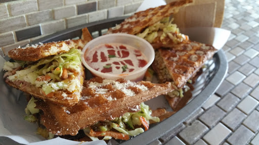 The food was excellent, the flavors were uniquely combined that melted in your mouth! I love the waffle sandwich concept, i will come back and recommend this place a try! Try the wasabi colslaw, delious!