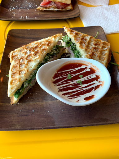 This place is amazing! Top notch sandwiches and service at a reasonable price. I had a hard time choosing what to order because it all looked so good! Ive never had waffles as bread before but it was delicious. It was soft yet crispy and sprinkled with parmesan. The dragon smoothie is really good too. And the employees were so nice and efficient. This place is a well oiled machine and I will definitely return!