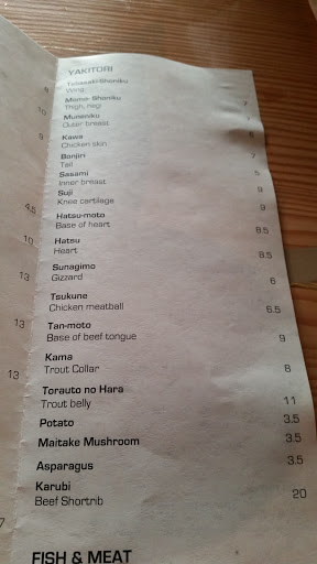 Perfect yakitori, beautiful sashimi, tasteful environment, good service.
