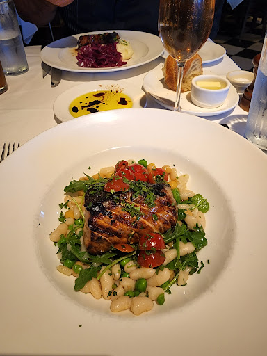 After a relaxing day in the sun, my boyfriend and I were looking for a place to stop for Sunday dinner. We were a bit under dressed but sat at the bar comfortably. The service was very timely and the bartender was really hospitable and friendly. Sweet Corn Tamales: SO GOOD! such a interesting mix of ingredients: wild mushrooms, sweet corn, avocado-cilantro sauce-really light and fresh tasting. Salmon with a fava bean, sweet corn, and white bean ragu: cooked perfectly, so filling and flavorful. Pork Chop: really tender, cabbage and mashed potatoes, pretty standard item but very tasty. Strawberry Rhubarb Crisp: INCREDIBLE. get it! its awesome. Wine selection was pretty good, wish they had beers on draft, not just bottles.