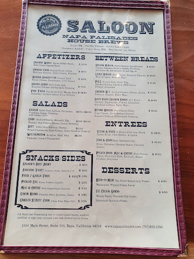If you are looking for great food, service and local brews Napa Palisades Saloon is the spot you want to be at. Seriously, Ive been there many times and no matter how busy or slow they are, (they get pretty busy!), the quality of food and service isnt sacrificed.