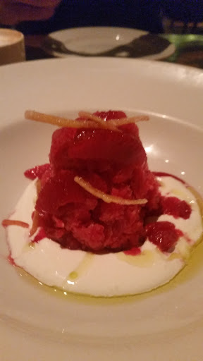 Came in on a Friday night for dinner around 21:00hrs and got a table for two right away. Picked out a bottle of Chenin Blanc and our waiter Damian was able to help us choose some complimenting dishes. We had the yellowfin crudo, Torchio with short rib, and Tagliatelle with shrimp. Tuna was nice and simple and fresh, pasta for both dishes were nice and firm and had good flavor. One beefy, but not overly powering, and the shrimp had a good seafood taste, but may be too fishy for some, like my dining companion. We had the chocolate cannoncini for dessert, described as a croissant with chocolate cream. Was a bit harder than I expected, but soft tasting finish to the meal. Would have preferred a darker chocolate taste. Would return again if I was in the area. Damian was knowledgeable about their food and made great recommendations to cater to our tarred and was pleasant throughout the whole dinner.