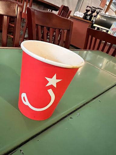 Paying $3 for a tall decaf isnt really my style, but I have to say it was one heck of a good cup of coffee. My wife, who usually doesnt like black decaf coffee, stole a sip from my mug twice after I let her taste it. That says a lot, as she is a real coffee aficionado. Watching them prepare the coffee is fun if youre not in a hurry. They grind the beans just for you, then pour hot water through the beans and a filter into a carafe of sorts, and then finally pour the contents into your mug, which they have pre-heated for you with hot water. Its elaborate and time consuming but I suppose part of the appeal if youre not in a hurry. The two women who were working there tonight were friendly and professional. The companys logo has a vaguely Communist look to it -- a red star and red cup -- but at $3 for a tall decaf theyre obviously in it to make some money.