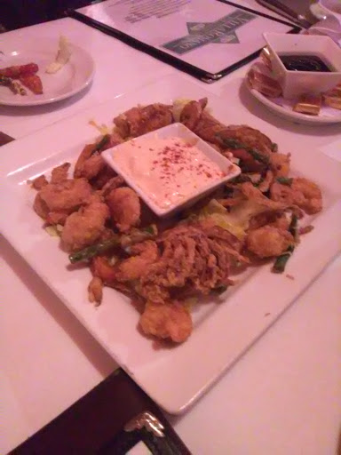 Service is slow. The glass of merlot was okay. Crab cakes had no flavor and tasted soggy, calamari was mediocre, verde salad was okay but the grapefuit in it was gross, tomato soup was good. Overall I dont reccomend this place, and I wont return. Flund this place on Groupon.