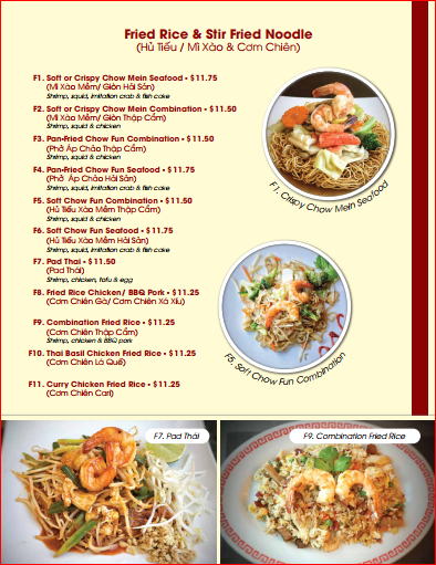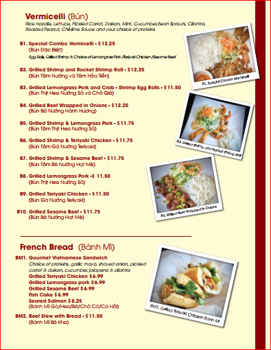 We sat down , had to get our own menus . Other people came in were seated and orders taken before ours . Vermicelli noodles were too starchy . It was hot and muggy . Prices were comparable to other pho restaurants . Ok food , shite for service