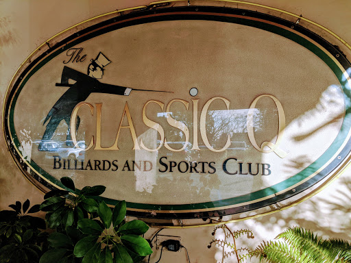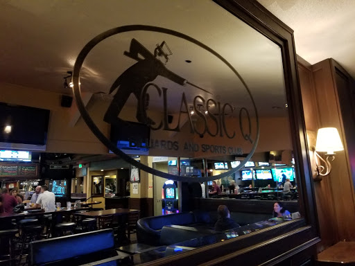 In a county with very limited pool hall options, and no real "nice" pool halls (at least that I have been able to find), Classic Qs is a good option for hourly pool table rental of decent tables, in a sports-bar environment. Many of the features you might find at similarly priced pool halls are missing (really nice cues, a hostess to rack games, etc.). While the waitresses are relatively nice, and almost always attractive, the staff managing the bar and the pool rental tend to be rather stand-offish and treat their job as if they are doing you a favor by allowing you to rent the tables or order a drink. The crowd here tends to be mostly 20s-40s, and fairly diverse. Where this spot really shines is big sporting events (such as Sunday football) as the walls are plastered with TVs, and there is plenty of space to host large groups of people. The food is comparable to most sports-bars, and the cocktails mixed a little on the unleaded side. Overall, while it is nothing super special, it is one of the best options Ive found to shoot some pool and watch the games in OC.