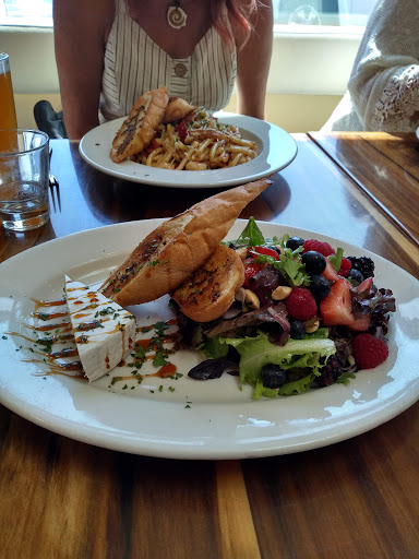 Great food, laid back but upscale feel, friendly service. Holy moley the BBQ burger ($13 and comes w/ delicious side Cesar salad) was melt-in-your-mouth delicious. Fair price for the quality. Its been a while since I liked a burger enough to write a review!