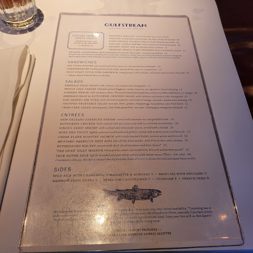 Gulfstream is luxurious, spacious and well lighted. I tried Ahi Tuna Burger at lunch. It was well marinated and was not heavy on the stomach. It was really delicious. Here is also good place to eat with customers at night. Gulfstream is located crossroad 1 hwy & MacArthur.