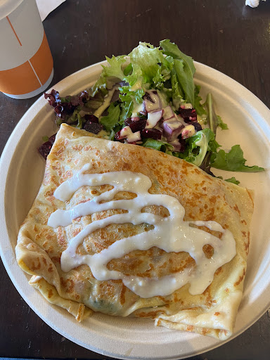 Delicious crepes! They have a custom crepe station where you can watch them make your crepe. Sure theres pre-configured options on the menu, but they let you customize it to how you want it. Also good coffee.