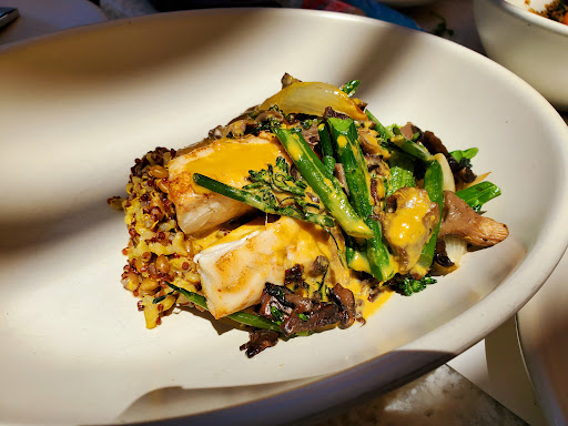 I ate here once.. waited 25 min. I came to try this place alone as most of my friends are strict vegans. It seems they served bigger crowds first. * be forwarned.. even though they give you this thing "we will call or text u when seat is available." It is NOT a first come first served basis.. that the bigger crowds would order more.. pay more I guess. I didnt want to sit @ the bar too noisy..I figured outside would be quieter & it was..& nicer.. like you are dining outside your garden. Anyways food is great. Service girl was nice but it takes awhile to get them. The drinks was so-so. Or dessert. Nothing I remembers or will ever order again. The burgers is only good because I was hungry after, from work. I came in a 2nd time..but did not eat.. was hungry for some bison burger. Well I stood right in front of the girl at the door counter..like 6inches away for 10 minutes.. patiently waiting.. yet I see the white hostess acknowledged 3 groups of people, total 12 people & perhaps my Harry Potter invisibility cloak or my power of invisibility is on..which is cool.BUT it isnt, because I was first in line; these people just walked in!!!! So either the white girl have some eye issues or color blind or prejudiced to a Asian girl who have the money & better job than her who CAN afford these foods? It is a cold awfully loud place anyways without human warthm. I like places that knows me by first name basis & treat me well. Anyways.. so after ten min. I told her off & left. This place lost a customer forever & hopefully many more.