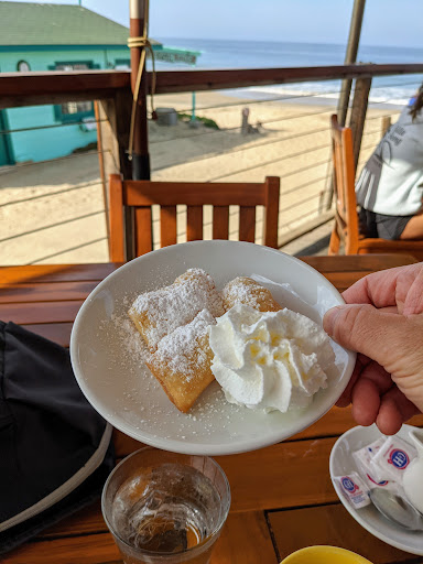 This place has absolutely the best breakfast ever! I first tried the eggs and potato skillet but regretted it after tasting my companions french toast. I returned the next day just to order my very own plate of french toast. The french toast is the BOMB! It tastes like bread pudding. I thought all was well with the french toast until I tasted the lemon ricata pancakes.. so back at it again with the lemon pancakes. Just when I thought I had finally found my dish, I tasted the cornbeef hash. OMG! When I saw corned beef hash on the menu I thought it was the crap that came in cans that looks like dog food. The corned beef hash at the Beachcomber is the fresh, fresh, fresh and good, good, good. Beware you need to arrive early for breakfast. There are long waits and they only set aside 30% of their tables for reservations so its truly first come, first serve. If youre not seated by 11:15 you cant get breakfast. The cafe is located literally on the beach so youll have to park in the lot on Newport Coast Drive. Skip the tram ($1.50 per person and only takes cash) and just walk down the trail to get the cafe. Its less than a 10 minute walk.