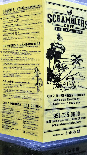 Scramblers is one of those breakfast places that tries to be (or just is) different. It has a Hawaiian influence. The food good, and fresh. Go early as the place is small and a line will form. (personally, I dont think its THAT good) Almost forgot. The area is super busy (mainly due all the Norconias going to Starbucks) and the parking lot is poorly designed. It can be a bear to park and get in and out of the place. Its easier if you park closer to Bobs Big Boy and walk a bit.