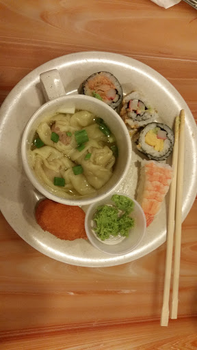 My friends & I went there tonight. I was excited after seeing the flyer & coupons in the mail. The advertisement claimed "Vast selection of sushi", "Over 250 buffet items", & "Largest selection of sushi". We arrived @ 7pm on a Sunday. The 2 hours we were there, they had a total of 4 types of sushi: California roll, Tuna roll, Imitation Crab roll, & Black Tiger Shrimp sushi. The other buffet items were good, but that isnt why I visit a "Sushi" buffet. Also, the waiter asked us 4 times to repeat our drink order, and every time got the drinks wrong. Considering the entire table had tea & water, this was quite frustrating. He barely understood & spoke English, so I cant fault him. He had no business waiting tables. Out of the 7 spoons brought to our table, 4 were still coated with food. Ive been to restaurants before where food particles were caked/baked onto the silverware. This is normal and understandable within reason. This was not the case. They appeared to have been lightly rinsed off & left to drain. Luckily, they had disposable chopsticks, so guaranteed "clean" utensils werent too hard to obtain. Overall, the entire experience was terrible. I feel bad recommending this place to my friends tonight, especially when it was my pick for dinner. Luckily the price was decent: $11/person isnt too bad. If youre in the mood for non-sushi, and you dont mind triple checking your plates/silverware each visit, its not bad. If youre looking for sushi though, try somewhere, anywhere else.