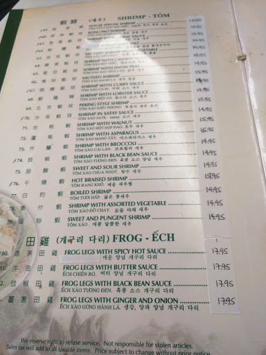 Moderately priced Chinese food. Highly recommend the garlic catfish dish.