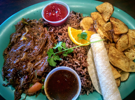 Recommend the Ropa Viejo and the jerk chicken. Their Agua frescos are really good too. The place looks small from the outside but its pretty big once you go in. Recommend the tables by the window