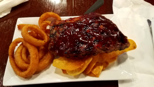 Ribs were tender but were boiled. Meat had no flavor and needed bbq sauce to consume. Sides of mash potatoes and Cole slaw were very average to bland. Fish and chips were good. Service was very good and everyone seem to enjoy whay they were doing. The tvs are great, a perfect place to see a big game or event. I will give another try and eat the burgers.