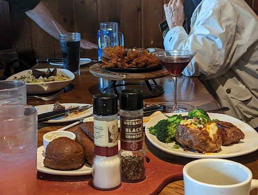 I had never tried outback before and I live about 10 minutes walking g distance from this one! One day my girlfriend and I said lets try it and surprisingly, she hadnt had it before either! So we go in, service was fairly fast we sat chatted with the nice waitress. She was shocked to know we new newbies. We both ordered new York medium rare. And let me tell you guys, steak NEVER tasted the same after that first bite. I loved every bite of that steak! So tender and juicy! 100% recommend!