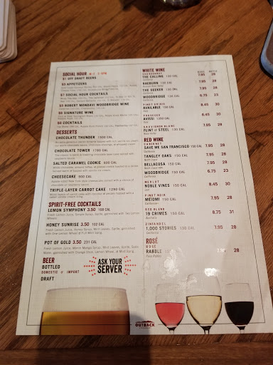 The steak is delicious and the staff is very friendly! We were mislead, however, when I treated my girlfriend and I here for a $42 Valentines dinner special. However, when we got there, it was actually priced at $52! Also, Id recommend going easy on ordering the beer here. A 22 oz seasonal Sam Adams, for instance, wouls run you $9.75 a glass! Other than that, if you want a delicious steak dinner at a reasonable price, Id still recommend this Outback :)