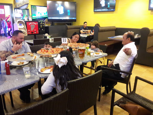 pizza was OK soda was flat had to complaint to them about that, The service was sort of confusing, reason being, is we ordered a family meal with pizza,wings, and salad family size, when they brought the salad they gave us a small to go size thousands island for everyone, That thing is size for 1 person maybe 2, but yet they walked around asking if everything was OK and the first time they came by , we werent OK but after that they kept checking making sure we were OK, So Honestly mixed feelings. Environment was cool SO I GIVE A 3 STAR IT WAS OK. But then end of the night was cool they where giving away prizes for some sports questions asked, and I WON ONE LOL, had to mention that .