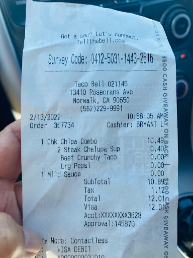 Horrible service. Went through drive thru and there was no other customer in line besides us. Ordered a combo 10 and asked them to change shell to Nacho Dorito shell and charge me extra for 2 flat breads ans 2 3 cheeses and put it through the steamer so i could make my 2 dorito nacho cheese tacos into extra cheesy gorditas. Bf ordered double chalupa box and did had ordered the same thing be done to his tacos. She charged us all the eextra, afyer a lot of guidance from us (we both used to work at TB so we knew all this could be done) and after she basically threw the food at us in a hurry to get rid of us (a car just barely pulled up to the intercom but okay) and told us our receipt was in the bag; receipt wasnt in the bag, none of the taco shells were nacho cheese DLT and only 3 were cheesy gorditas (even though we were ordered the extra 2) , so we were charged a surplus charge of $4 and some change and didnt recieve the extras we had paid for. It was too late to go back and correct the order and even if we did by the way the drive thru employee rushed us through the line, it doesnt seem like they wouldve corrected it if we had come back. We ate the food, but the Taco Bell craving was definitely not satisfied. So if youre a Taco Bell lover that has a craving for some Taco Bell goodness, DO NOT COME HERE.
