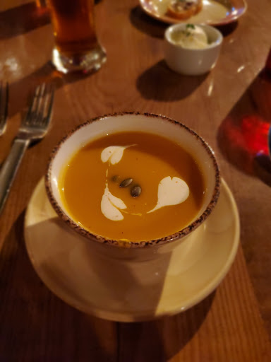 Tried for the first time for my wifes and my 3rd anniversary. Called and set reservation for 5, stated it was our anniversary. Arrived 20 minutes before dinner, were greeted and welcomed to sit in bar lounge. Fresh house chips waiting on tables, extensive beer, wine and spirits list. Were seated just minutes after 5, and congratulated for our celebration. Atmosphere is rustic yet elegant. Wife took advantage of early dinner special, salad, grilled snapper with vegetables and a dessert..... ...only $25! I ordered rib eye and substituted duck fries for baked potato. Wow, duck fries!! Only place on west coast that Ive found knows how to do blackened rare. Food was perfect, sauces for steak are wonderful. Only complaint, Heinz catsup, the duck fries deserve better, maybe a Russian catsup, eat plain or use the sauces for the rib eye. Waiter offered to upgrade our early dinner dessert choice free of charge for our anniversary. All look great, but oh my the pumpkin cake! Were buying a full cake to take to folks for Thanksgiving. The upgrade was a thoughtful and generous gift. The type of customer service our society has forgotten. Thank you! Final wrap up, great food, good atmosphere, good pricing and excellent customer service. Definitely coming back for next anniversary and any other reason we can find.