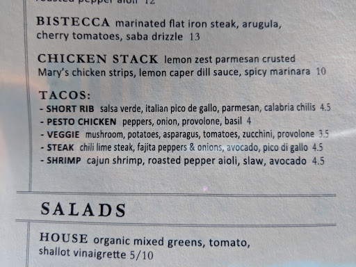 Delicious short rib tacos. My 18 month-old son loved the meatballs and the survey. Kid friendly!