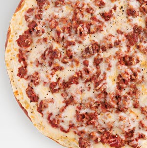 A very thin, but very well-balanced pizza. Less of each ingredient in exchange for better taste.