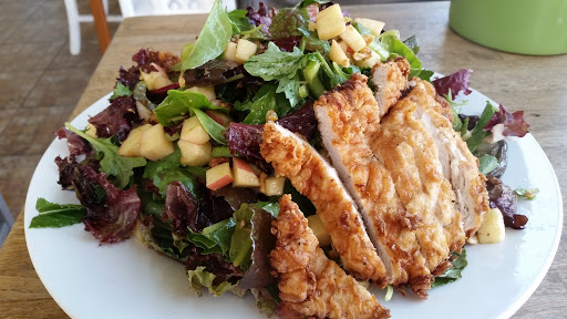 The food is very good here, so far Ive tried the Cafe 15 salad, fried chicken sandwich, pulled pork sandwich, and pasta. My favorites are the onion rings and french fries. Down side is there isnt much seating and if you dont get there before the lunch crowd youll have to get your food to go. They have a nice selection of drinks and teas. The game plan is to try everything on the menu.