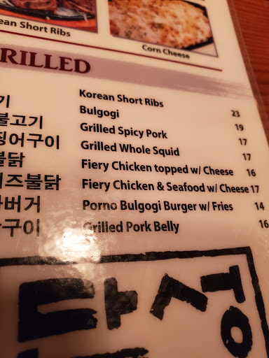 Late night porno food, serving until 2am. Beer and cocktails available by the pitcher, great Korean after-party food. Very loud inside, usually at least one or two large groups of young, attractive people. Reasonably priced, love this place.