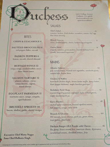 Pros: Great food (try the Crab Fries and the Pastrami Sandwich), Delicious craft cocktails, Expertly-crafted wine and beer selection, Friendly wait staff and bartenders, full coffee bar, and did I mention GREAT FOOD? (try the chicken sandwich and the bread pudding too!) Cons: Not right next door to my apartment. It is clear that a ton of thought went into making each diners Duchess experience amazing. What are you waiting for? Get in there!