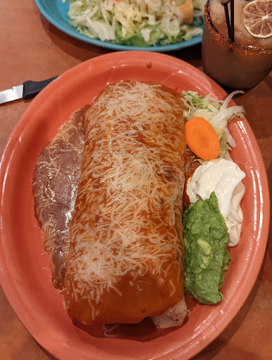 Giant burritos here. Tasty but could use a little sauce (I ordered sides of sour cream and guacamole). The margaritas are unique. Super friendly service. Was really busy at 6:30 on a weeknight... guess that says it all.