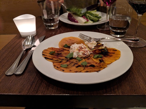 Had a deeply moving glass of red wine here along with a variety of sumptuous dishes (fried zucchini blossoms, perfect burrata, pasta with broccoli romanesco) that complimented the beverage perfectly. The place is populated by really nice servers who are willing to patiently walk you through the inscrutable menu. We ordered (some would say) randomly, and we never went wrong.