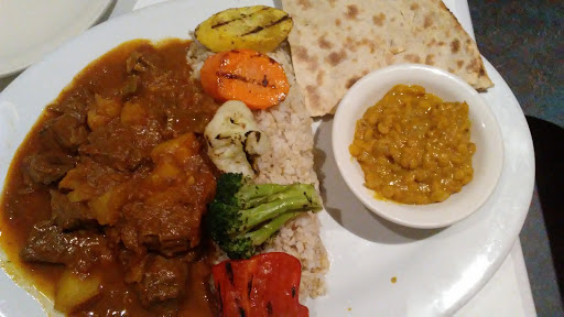 There is nothing special about this restaurant. We went there for lunch buffet. For $7.99 because it was July special (normally its $9.99), we got free naan and a soda. The naan was but just blah, very dry. They had about six dishes for the buffet, some vegetarian, some meat. They had chicken tikka masala, spinach paneer, tandoori chicken, dal, lamb, and several chutneys. The food was OK, not authentic Indian food. Slightly better than the Indian fast food restaurant across the street (Currylicious). The patio is very nice, cool and private. Servers are OK, fast but probably dont like working there or something because they never smile at you. I wont go back there again.