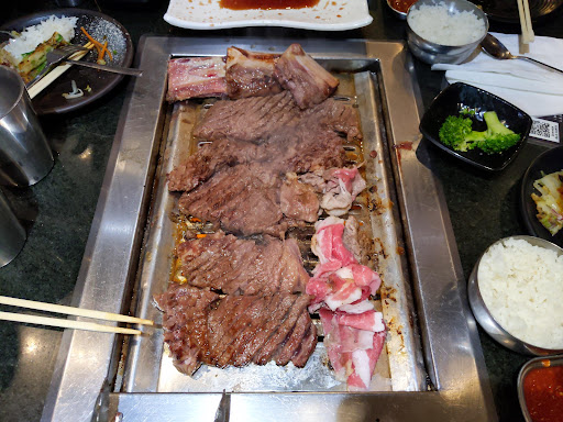 Love Korean food. The best perk of eating at Korean restaurants is that they give you 10 different side dishes before your main entreé. We ordered our usual favorite, the Galbi, its amazingly delicious here. The interior of the restaurant isnt your normal Korean BBQ eat out. Though they have a grill and vent for each table, the place is surprisingly kept clean. Really felt like walking into a steak house. The service was awesome. The waiters are humorous and quick to serve you your food. Definitely recommend this place.