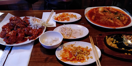 Coming to this place was such a yummy treat throughout college! They used to only be open for dinner and late-night eats, but have since adjusted their hours to include lunch and the in-betweens. :) I always ask for a half-and-half order of Garlic Soy and Sweet & Sour chicken. Their chicken goes real well with a side of rice (which would have to be ordered additionally), though I know many people just down the chicken on its own. Cheese corn, yogurt soju, and tteokbokki are other popular orders. Nowadays, I tend to call in (20 min. before!) and just grab chicken to-go. Theyre considerate to include a sizable plastic heat-sealed container of their pickled radish and another of their salad appetizers in to-go bags. Bringing food home is nice because you can make & eat your own rice in quiet comfort, haha. However, their restaurant is a popular little spot to hang out with friends for dinner and after, too. They have their own parking lot, but you can also find parking on the streets if theres no vacancies. Expect a bit of a wait getting a table on most evenings if dining in-house (although theres sometimes surprising availability nowadays). UPDATE: I found their chicken noticeably less flavorful the last time I ordered my usual. Not sure if its a one-time fluke, but there was a lot more bland white meat on my chicken rather than the usual packed-to-bursting-in-flavor wings expected. The sauce flavor was right, but the choice of meat and saturation of flavors therein was definitely off.