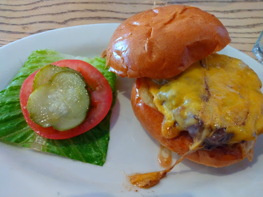 Great burger, great chili. Accommodating staff. Spartan interior with TV.