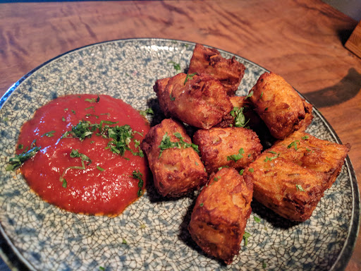 Terminally hip place, good drinks, but the food is horrid, completely lacking in nuance or flavor balance . Poor choice after poor choice. We couldnt even eat any of the ramen dishes. To be frank was a bit like pouring aquarium water over spaghetti. Nothing fresh about it, flavors muddy and unsuccessful. Fried rice was the only dish close to decent. Not worth the lines or the cost. Completely baffling and to be avoided unless you are a little hipster lemming who needs to jump off the cliff with the other little hipster lemmings.