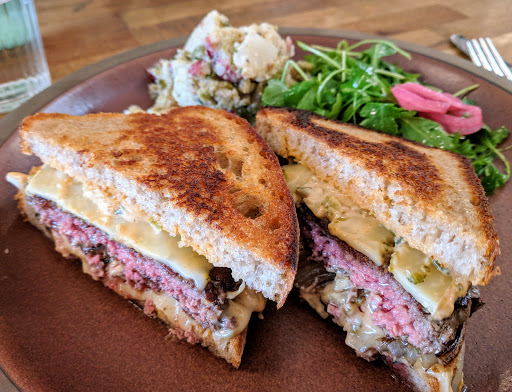 Excellent breakfast menu, top drawer baking. Good, friendly service in a comfortable, nicely designed space. Tables and counter service. My waffle and sausage couldnt have been better, and my companion thought her corned beef hash was delicious.