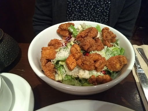Small setting, de licious food and salads, mini bar with beer tap and wines, desserts. Bit pricy but worth the cost