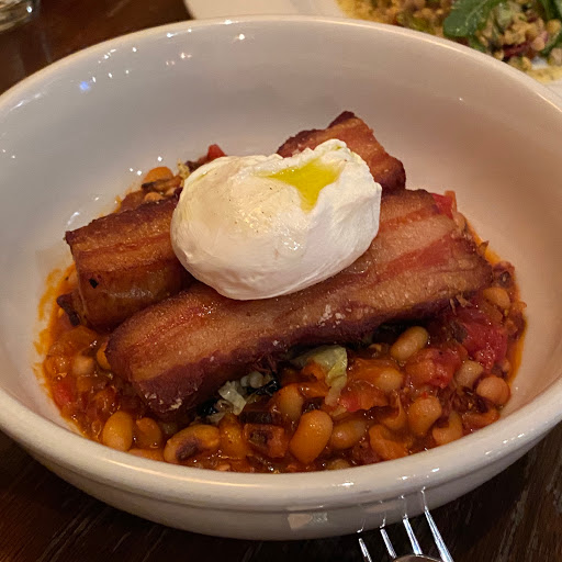 I am a long-time fan of Bakesale Bettys Fried Chicken Sandwich/Salad and recently I tried Southies (Wood Taverns sister fast casual) version. The chicken was perfectly cooked and reminded me of Japanese chicken karaage but the vinaigrette was no match for Bettys. Other than that, I usually order the decadent pork belly sandwich which is rich in flavor and satisfying. Theres not much seating and my favorite place to eat is by the window overlooking College Ave.