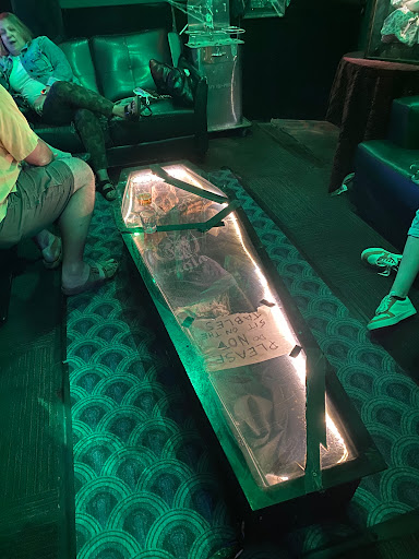 Its a dark dive that smells like fresh puke but has a pool table and photobooth