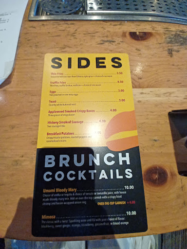 Went Friday at the beginning of happy hour. The ambiance of the restaurant is excellent, along with polite and friendly service. Everythings excellent so far, and so now to the food. I had the umami burger as well as some cheesy truffle fries. The burger was decent, the bun was perfect though it didnt quite meat my expectations. The fries were acceptable, but once again did not meet my expectations, more so than the burger. The fries were saturated in cheese at the top with the rest of them having none at all, and the truffle flavor did not come through at all. Overall, good service, awesome restaurant ambiance (with a pretty sick patio space), and lackluster food. I would go back, but for the experience provided at the cost that it was, I wont be a very frequent customer.