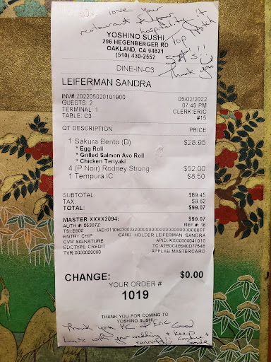The servers were friendly and attentive, however that was the highlight of our experience. We were seated at a booth, and the cover that they had on the bench was not secured so every time that I moved it would slide and end up on the floor. The restroom smelt horrible, appeared that nobody had serviced it in sometime. All these things could have been overlooked, but my family ate there the night before we were to leave Oakland and return home, only for all of us to get food poisoning. We are now 3 days out from our dinning experience and are still suffering through the affects of the meal. I will never eat there again, and caution everyone the same.