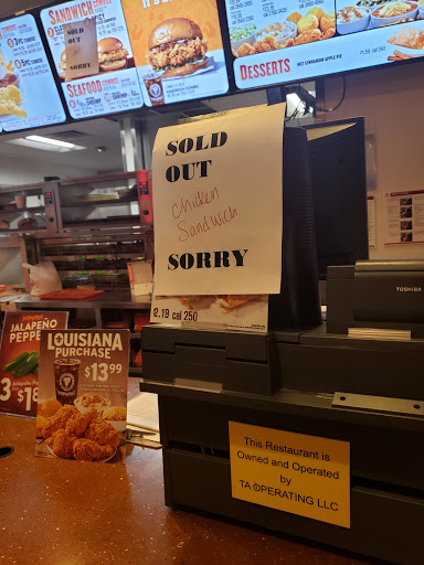 Great location. Its located in the new Petro Truck Stop. The service was average and the place was clean. Just didnt like the food.