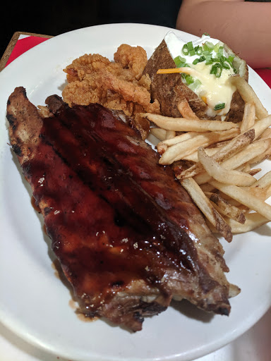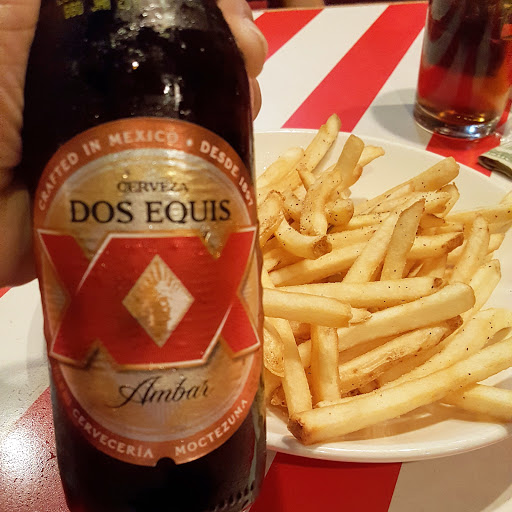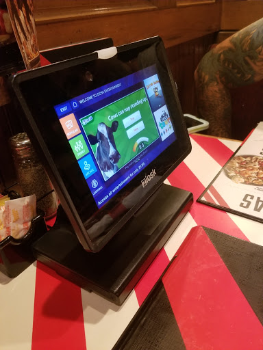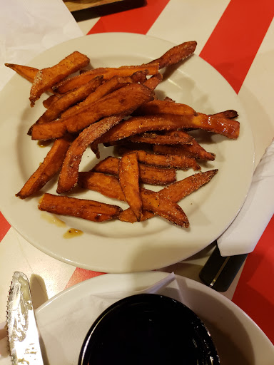 I absolutely love TGI Fridays. The food is always amazing. The green bean fries are what keep me coming back. This location is kinda off the path. Its kind of in an industrial looking area. We thought we took a wrong turn. But, there it was! Our table was SUPER sticky. The entire table. Maybe the varnish was coming off? It was a bit uncomfortable. It was busy, so we decided to just suck it up, and keep our hands and arms off the table. I ordered the Screaming Tiki. Very small for the price. Wasnt great. Wasnt terrible. The pineapple wedge was VERY under ripe. Hubby had a mojito. He didnt even finish half. Said it was super sour. Ive never seen him not finish his drink! Green bean fries were amazing as always. Hands down, best thing on the menu. The dipping sauce for them, just as amazing. I got the fried chicken sandwich, with fries. It was pretty good. I had to add mayo. A little dry. Supposed to have a Tabasco mayo? Didnt seem to have it. But after adding mayo, delish! Hubby got the lobster and ribs. He got the lobster grilled. He loved the lobster. The ribs were amazing. Super tender, and lots of flavor. Baked potato was good as well. Coleslaw was good, but a bit on the vinegar side. Good food. Drinks are a hit or miss. Our first two, a miss. But we ordered 2 scooby snack shots, and those were pretty darn good!