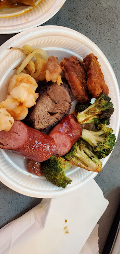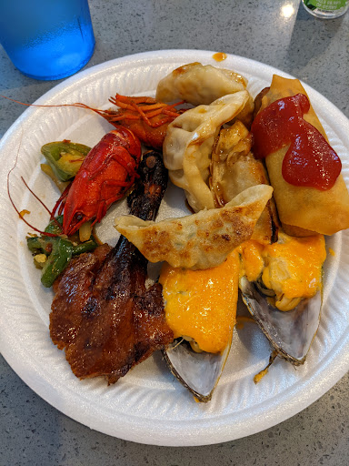 My new favorite buffet! Theyve got Brazilian BBQ, sushi, and gelato!! The Brazilian BBQ was more of a plain old steak that theyve roasted but still tender and delicious! Even got a fresh grill to cook up your customized stir fry noodles. Sooo many options and super crowded, especially on Sunday during lunch when I went (they charged dinner prices for that particular time; about $25?). Much cheaper during the weekdays (like $13 for lunch but not sure if the selection is more limited). Still only waited about 5 minutes to get seated. Impressive! Well staffed. Good service. They even got baked buttery half lobster and crab legs, which went out super quick but they restock fairly quickly! Like every 5-10 minutes? Bathroom is fairly clean with fancy sinks that have a built in dryer! The only con is how far away this place is from my house but at least theyll open up a new location in Westminster mall. That would be so much closer!